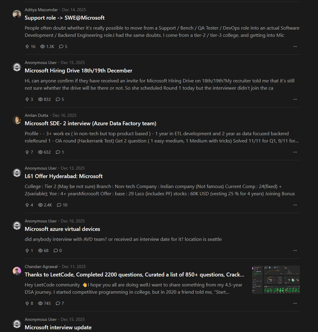 >>107657038do you have an interview with them coming up? you can study enough to get decent at LC if you have more than a week to practice.On a more depressing note, LC has a comments section for microsoft as a company and ALL of the posts are by indians. Almost every single one.