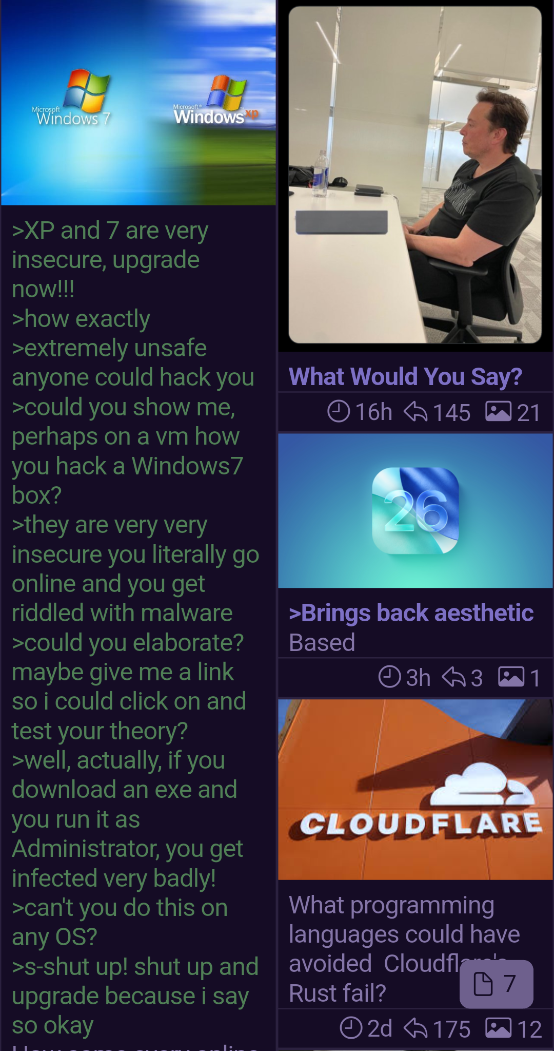 I honestly don't understand you gridfags. A purely geometric grid wastes space when there's little text, or makes it impossible to read the whole OP when there's too much text. This was solved with the "staggered grid" option that was lifted straight from KurobaEx.