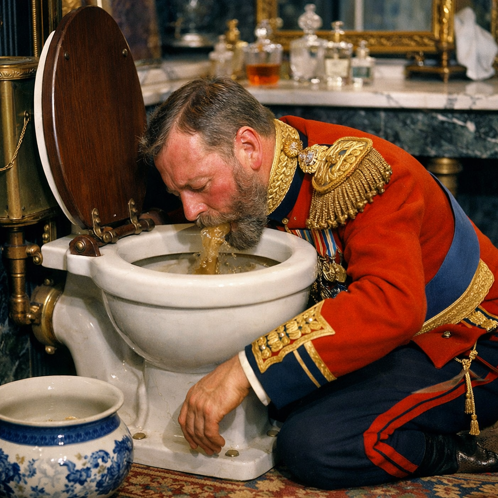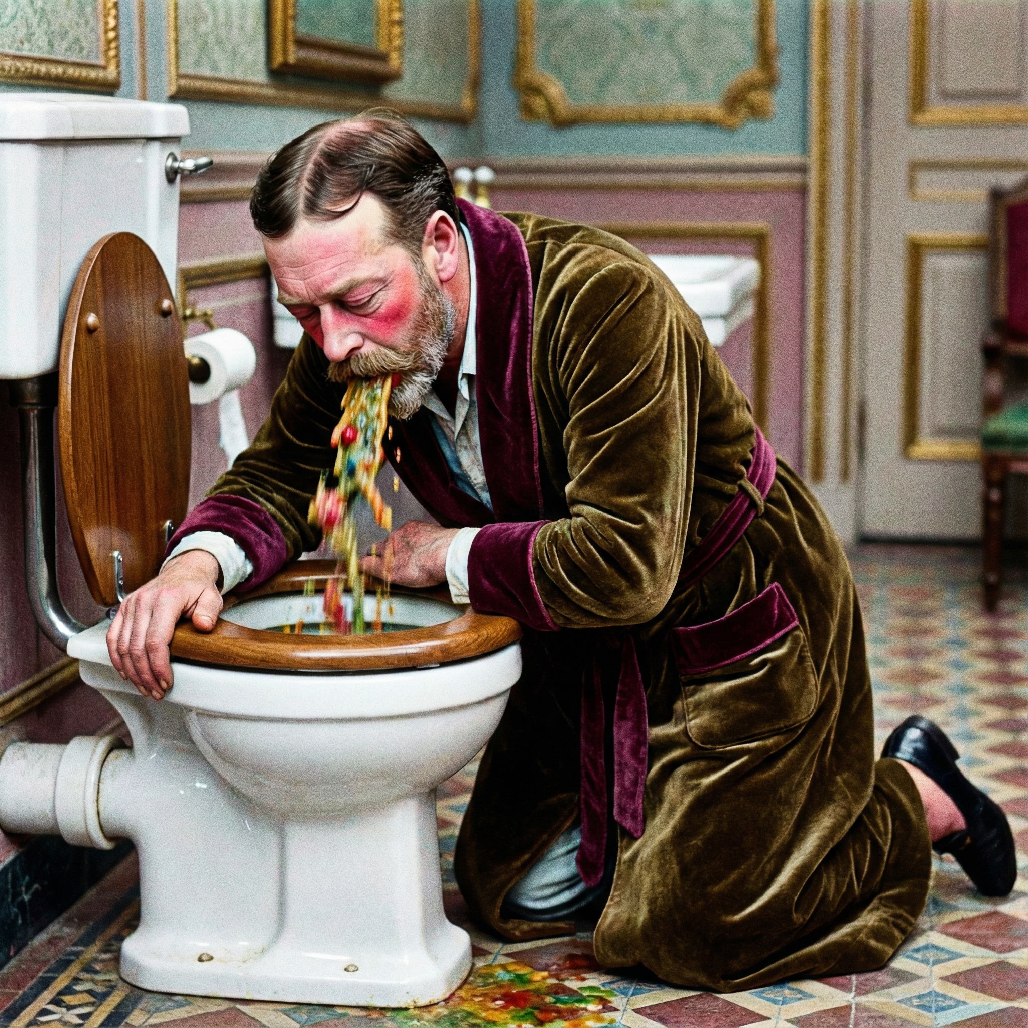 It looks like he's puking up sweets here
