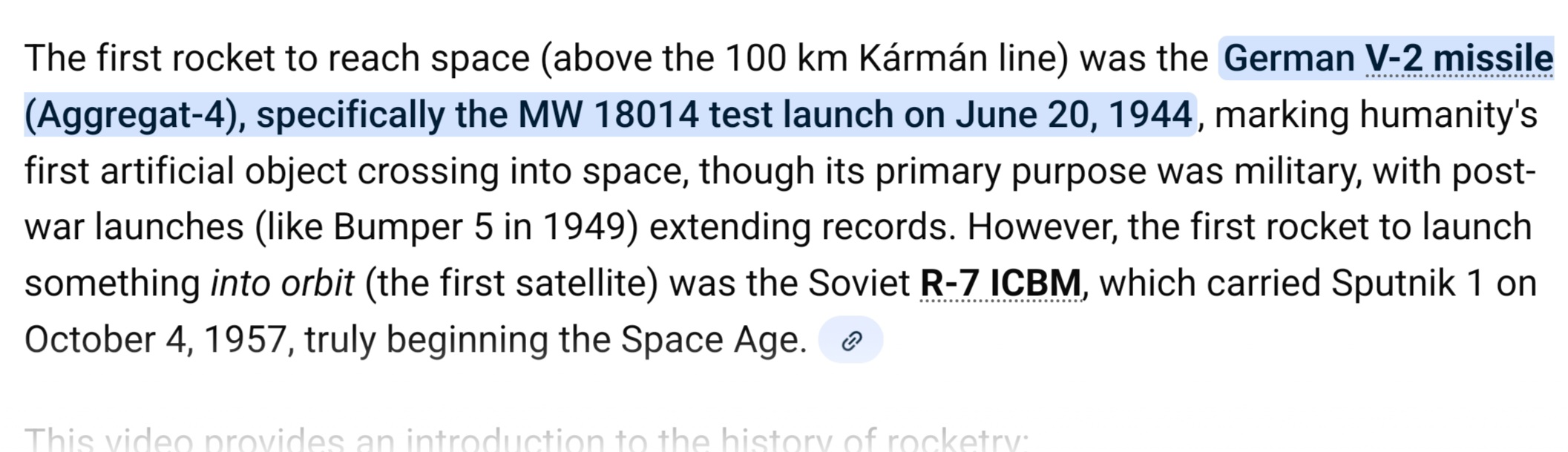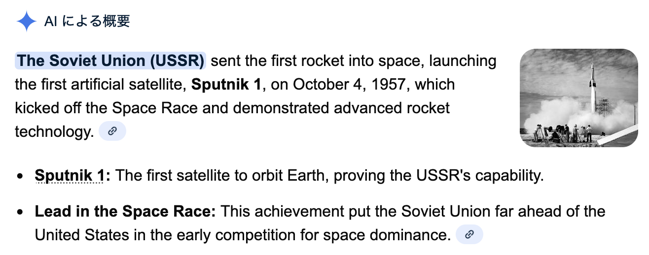>>107714720>believing AICan't find the screenshot but 2 years ago anon posted a screenshot of his ChatGPT discussion about this topic and after ChatGPT confirmed three times that the V2 was the first object in space, it still answered the question "Who sent the first object into space?" with "Soviet Union"If you enter something in Google and believe whatever the AI result tells you, you're the biggest moron in this solar system.