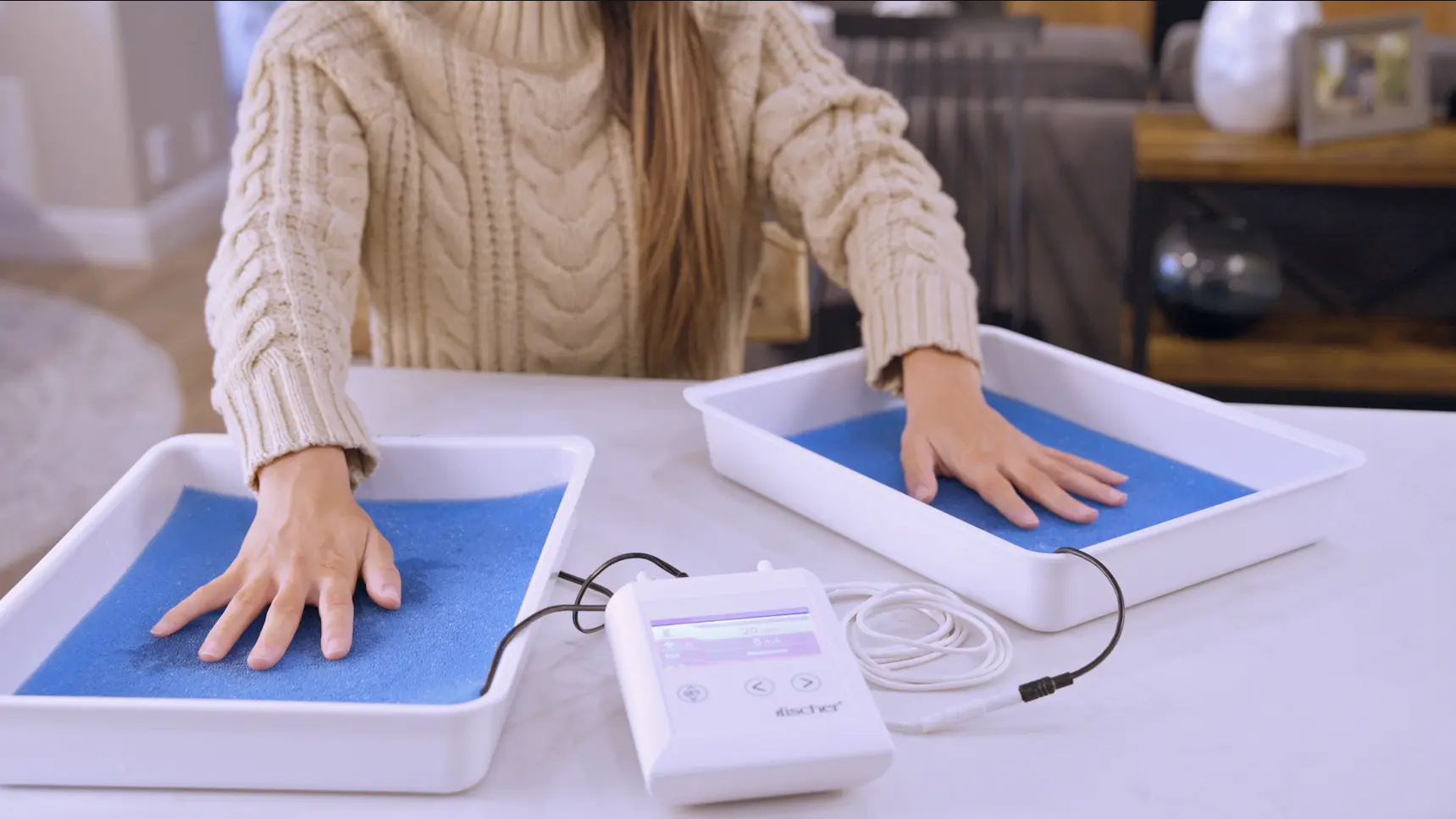 with this machine, a few times a month i run electricity through my palms and it deactivates the sweat glands completely, making my hands bone dry and letting me enjoy social settings again