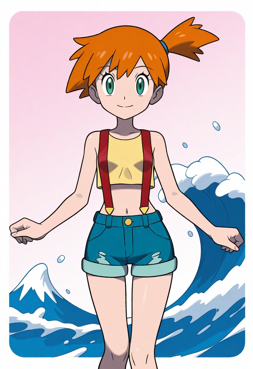 >>107604871I doubt you will be able to get much closer without a LoRA. I specifically prompted for ken sugimori's art style. Generators don't seem to understand that suspenders don't go flush against the skin.