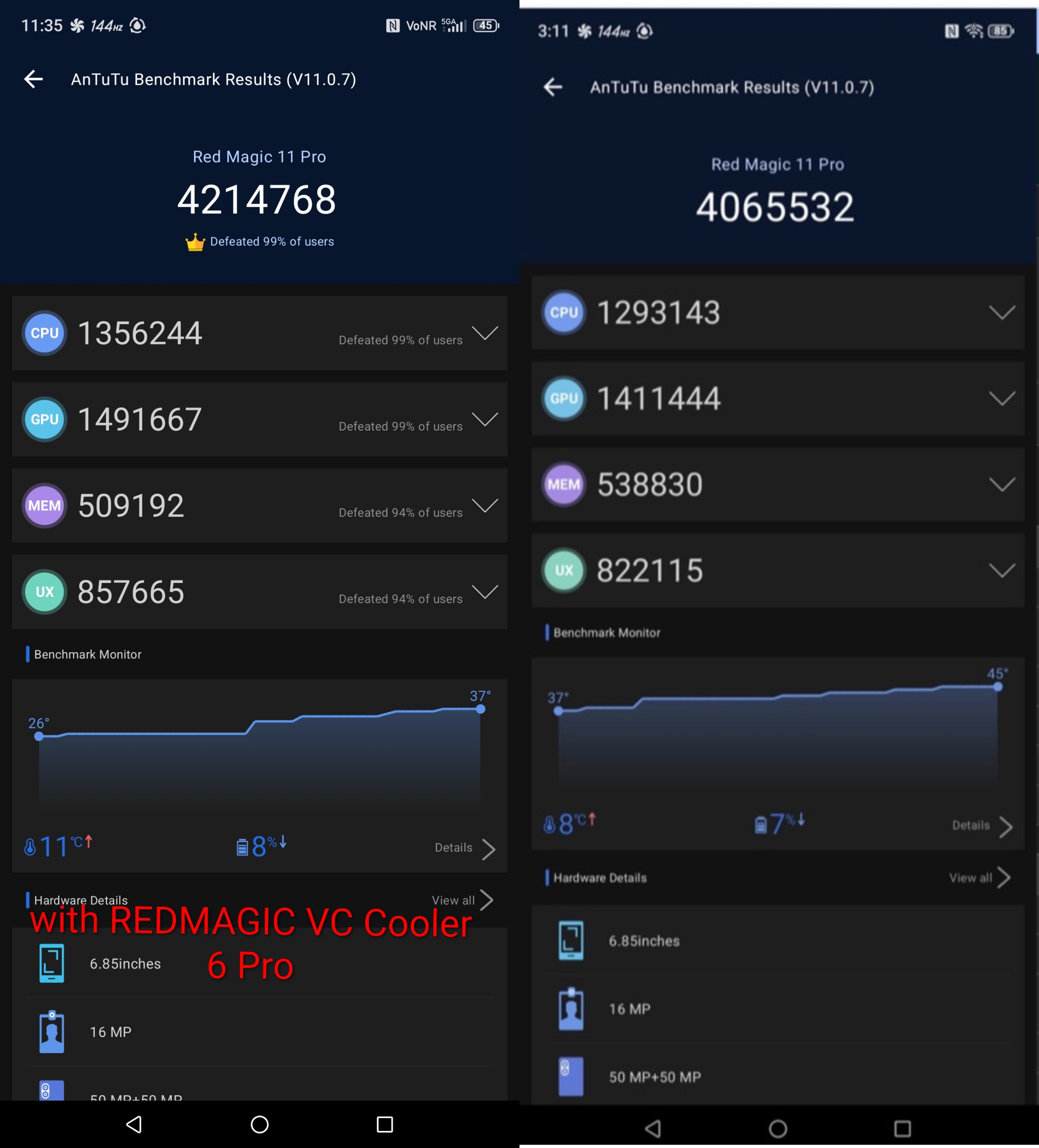 >>107652272I own a iPhone 17 pro max and just gave away my s25 ultra and will be buying a OnePlus 15 and a S26 Ultra. >>107651199The new RED MAGIC VC Cooler 6 Pro really works too. Here's the results pic related.