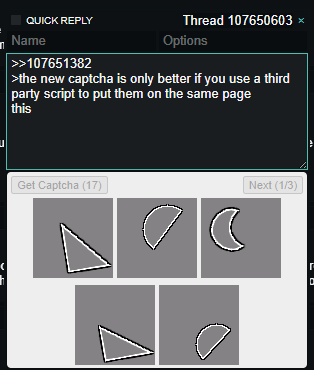 >>107651382>the new captcha is only better if you use a third party script to put them on the same pagethis