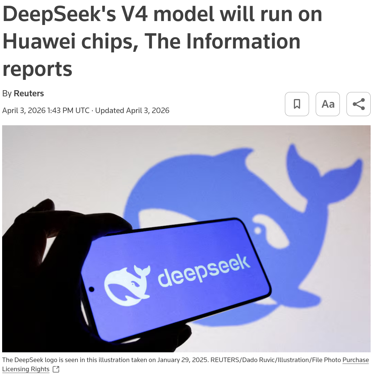 https://www.reuters.com/world/china/deepseeks-v4-model-will-run-huawei-chips-information-reports-2026-04-03/