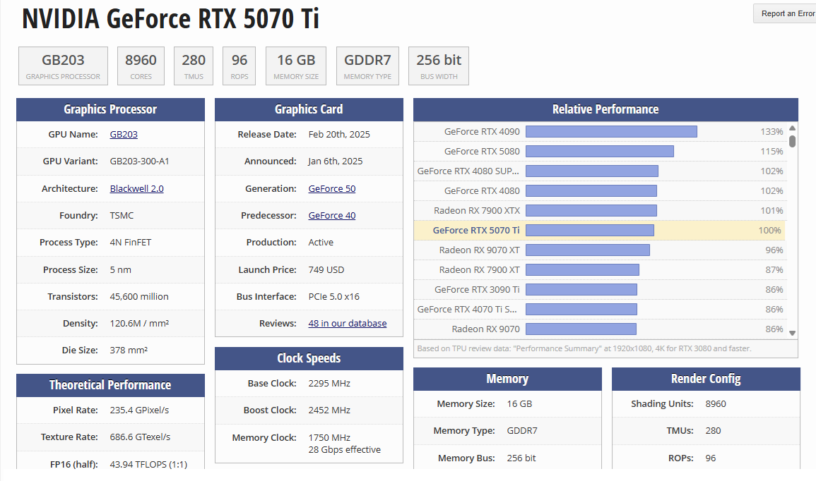 >>106973494They set whatever AIB overclock the 5070 Ti had to the nVidia spec for the testing to make the card match the unit they used for testing during their day 1 review. I don't see anything wrong with that? They did not make the 5070 Ti run any slower than what nVidia sets the chip to run at.>>106976229>Pretty sure the 5070ti will boost to like 2900mhz or somethingUnless I am missing something it looks like it boosts to 2452 MHz