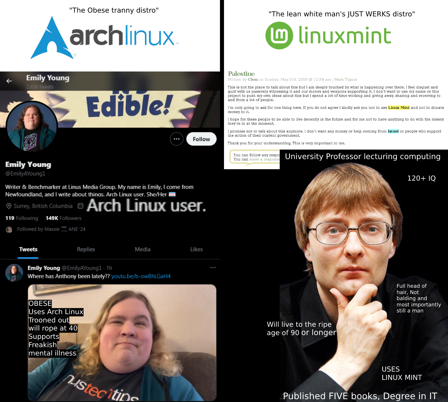 >>107012126>having multiple versions of the same package is normal and well supported>transactional upgrades and rollbacks>don't need root to install packages>define your entire system (including home by default, unlike troonixos) in a single file>cross compile like it's nothing>ran by straight and white GNU chads>notarized>used by actual companies that create things>doesn't use outdated and broken tech with hacks on top of it to keep working>recompile your entire system with 0 issues using a single short command>thoroughly vetted and tested by professionals>makes corponiggers seetheThat's just from the top of my headComment too long. Click here to view the full text.