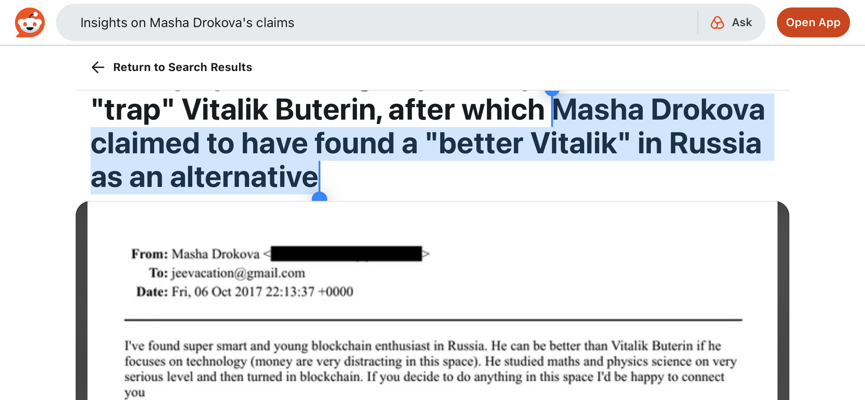 >>108504735Not true. That’s Vitalii Skakun, not Skikun. I am in America since 2010, I haven’t traveled back to Ukraine ever since. “"trap" Vitalik Buterin, after which Masha Drokova claimed to have found a "better Vitalik" in Russia as an alternative” Also see attached image if you’re maybe talking about Masha Drokova, a russian government woman who said: “I've found super smart and young blockchain enthusiast in Russia. He can be better than Vitalik Buterin if he focuses on technology (money are very distracting in this space). He studied maths and physics science on very serious level and then turned in blockchain. If you decide to do anything in this space I'd be happy to connect you”. By the way, I once made a metamask account when it was MIT licensed to login to some site, creating a ethereum wallet that I didn’t share. Later, MetaMask became proprietary and maybe leaked people’s wallets? MetaMask was created in 2016.