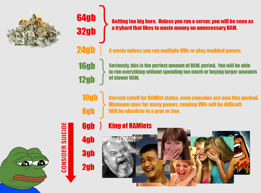 >>1075609418GB hasn't been above ramlet status for at least a decade. 16GB is a comfortable minimum, and 32GB is for when you want a little extra. 64GB is tryhard, but not to the point of excess. 128GB is for if you run a server or do gens or whatnot.