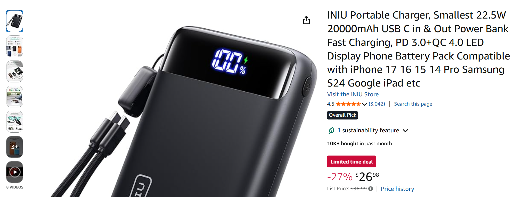 >>107555321So this is 10000 mAH for $25 but theres this 20000 mAH for roughly the same price. I heard Anker was a good brand but I'm wondering I can get this