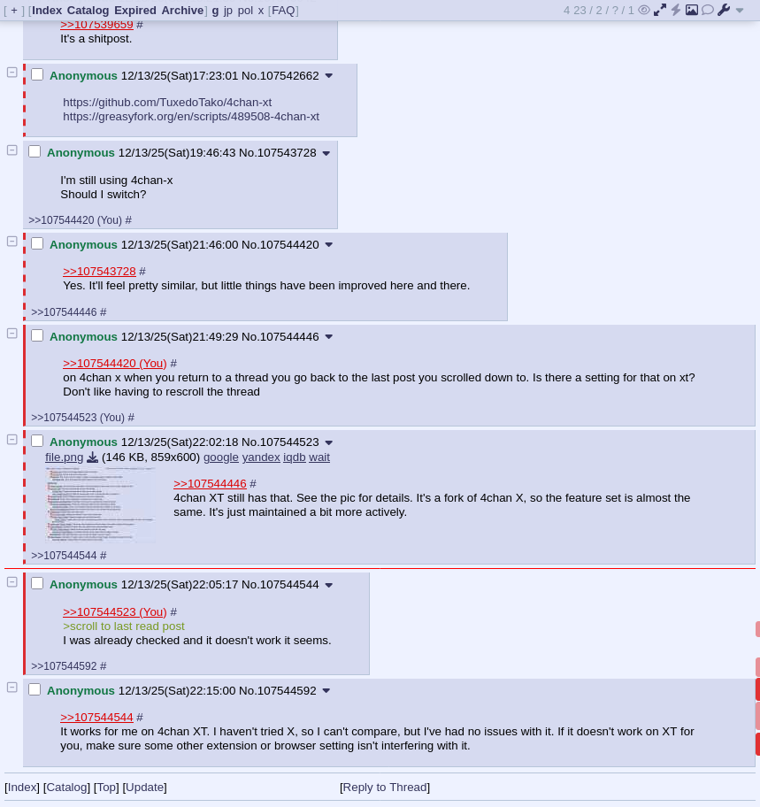 >>107544544It worked for me, too. I'm using Floorp 12 (a Firefox derivative) and Violentmonkey for userscripts. What browser and userscript manager are you using?