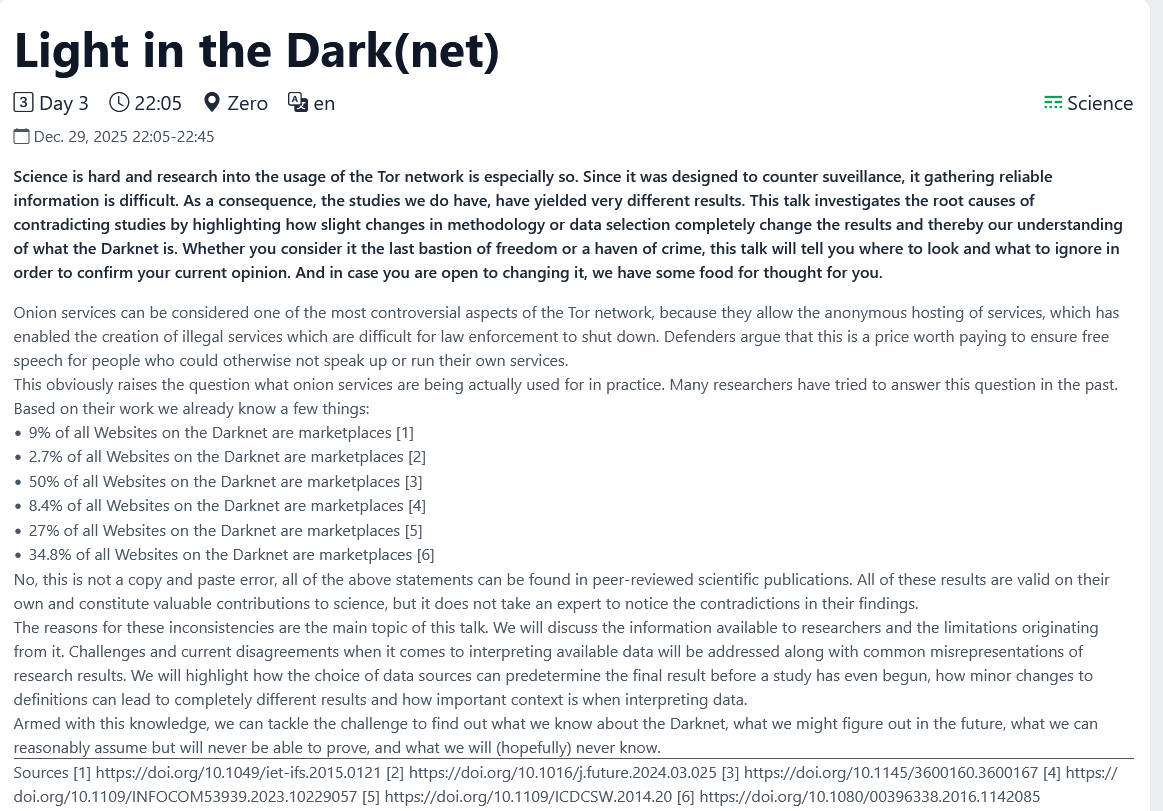 39C3 - Hamburghttps://events.ccc.de/category/39c3/https://streaming.media.ccc.de/39c3https://media.ccc.de/c/39c3https://fahrplan.events.ccc.de/congress/2025/fahrplan/Plenty of good talks so far - lets keep the troon dissection to a minimum as well and concentrate more of the tech content