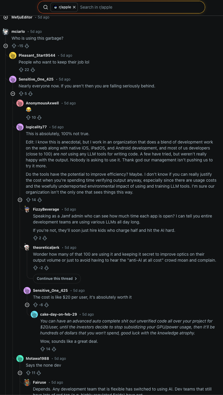 pleasantly surprised to see the apple reddit actually has dissent
