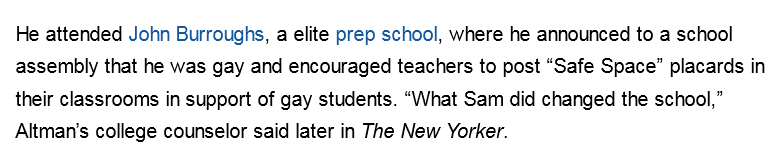 >>107835255Altmans a Stanford kid, also 'elite prep schools' before that. I'm sure his talent would have still shone through regardless, had he been a Child of the Projects.