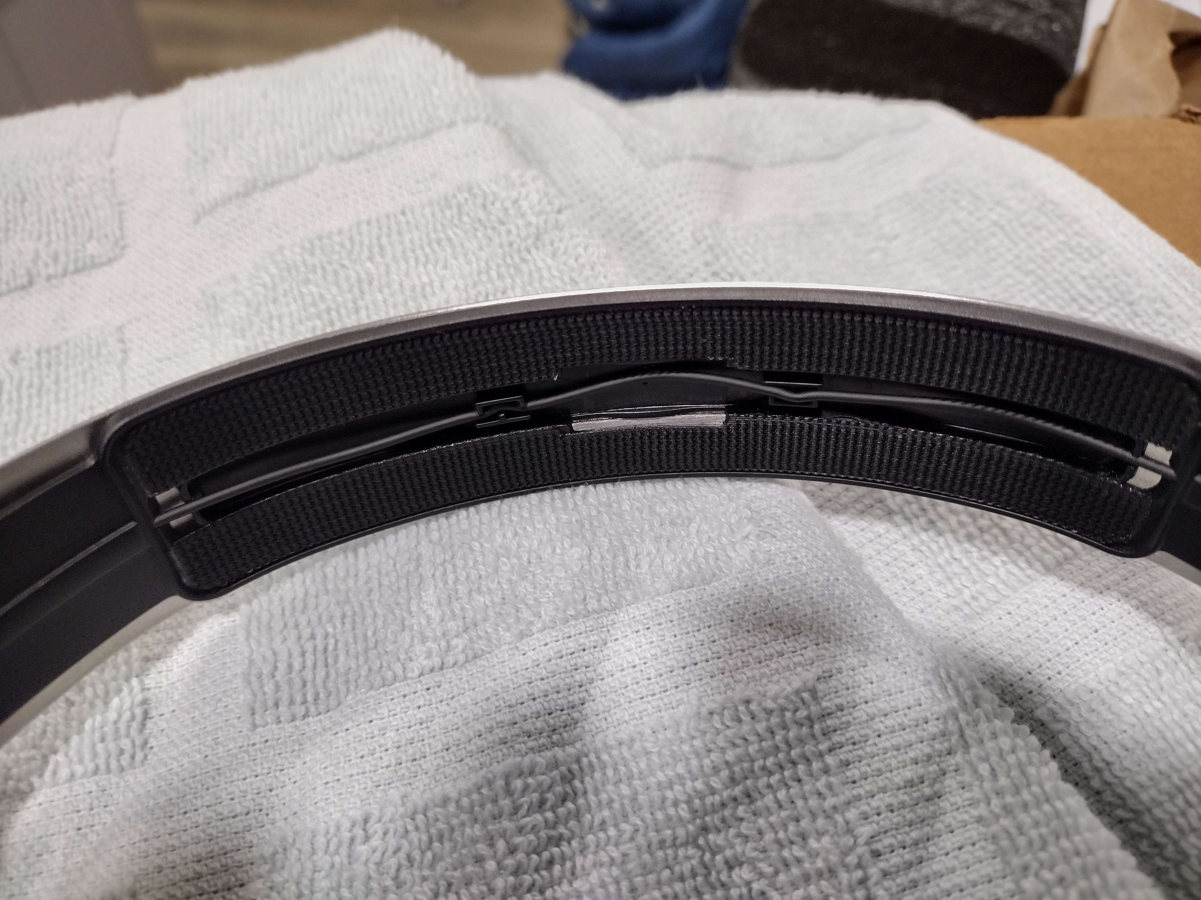 Might have found a possible solution to my 490 pro problem. I discovered the cushion strip at the top of the headband is removable. If I do that there is just enough room to get them over my ears. But if I do that there is a bare wire exposed and I'm worried if I leave it like that sweat and other stuff might get up in those cracks. How risky would it be to leave it like that?I was thinking would it be safe to run a strip of duct tape over it so it's covered up at least? Could duct tape have any adverse effects on it over time?