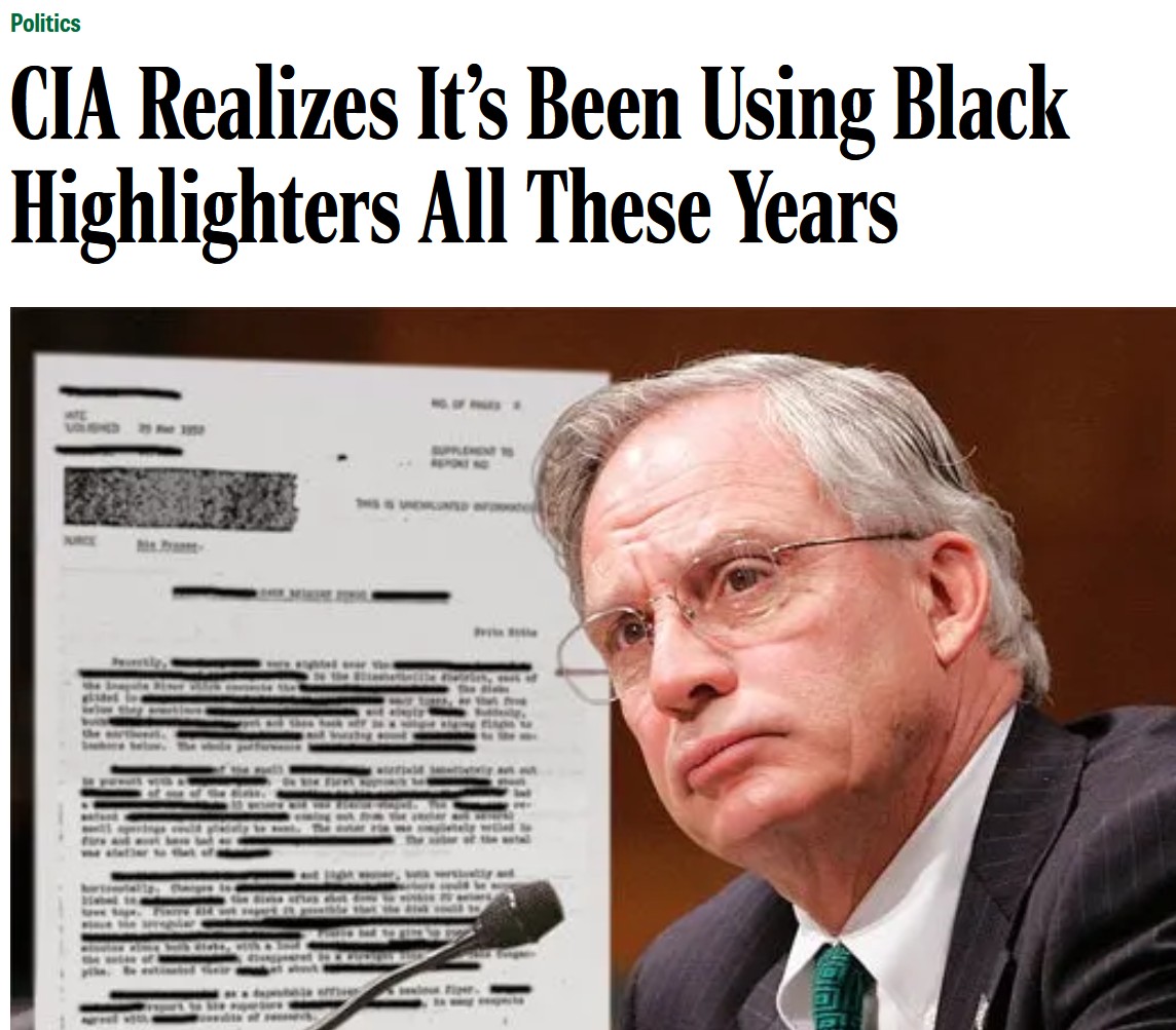 >>107644199They've simply solved a long standing issuehttps://theonion.com/cia-realizes-its-been-using-black-highlighters-all-thes-1819568147/
