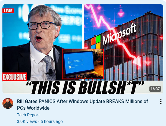 Fake AI story ended up on my feed. How do I know it's BS? It is apparently about KB5034441, which had something to do with a security fix for the recovery partition. Yet according to the video, the update came out in March 2025 and resulted in mass BSODs, flights cancelled, ATMs not working, and Bill Gates being pulled in to a board meeting?