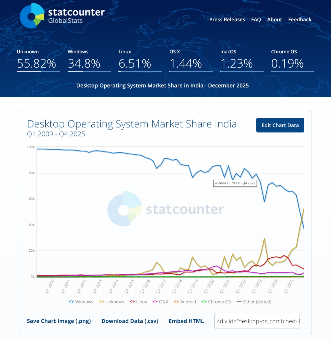 >>107734009The source is actually statcounter's Indian desktop pageA redditor made it 2 years ago5 years ago Linux's jeet marketshare stood at 5%, then it grew to 15% and that's what this mong is spamming and now it's down to 5% againIt's a testament to what shit source that site is with random fluctuations like thatAnd majority of their data being unknown so they're failing at their jobs