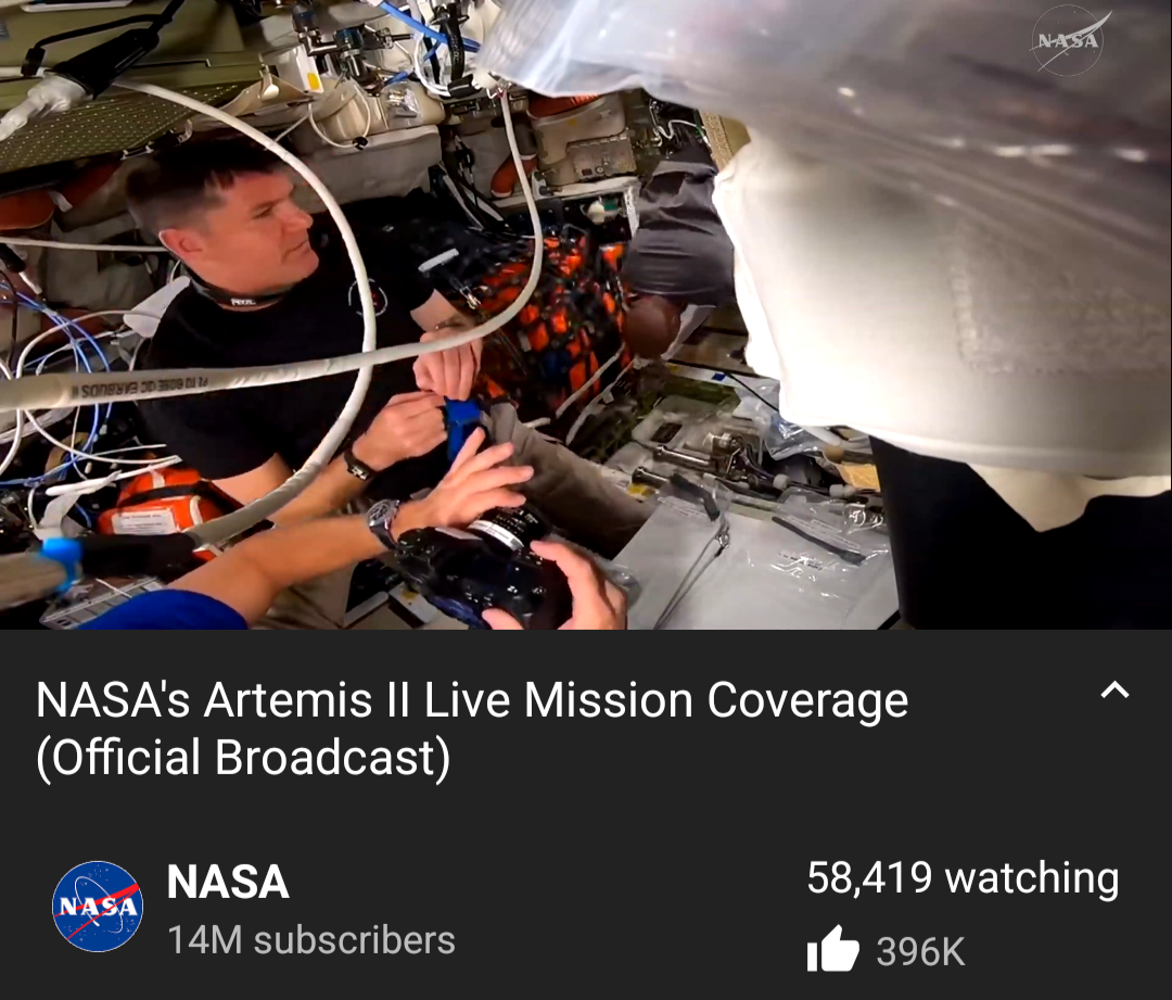 Artemis 2 Live streamhttps://www.youtube.com/watch?v=m3kR2KK8TEsTechnology doesn't get more advanced than this.