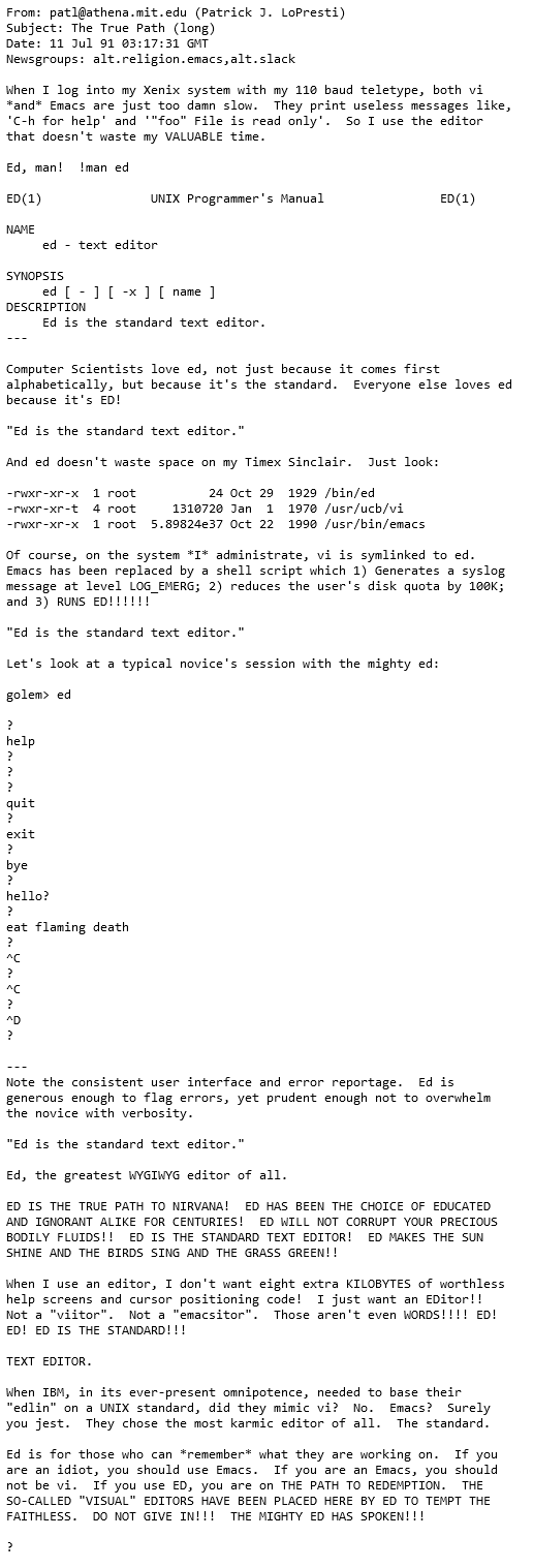 Ed is the standard text editor