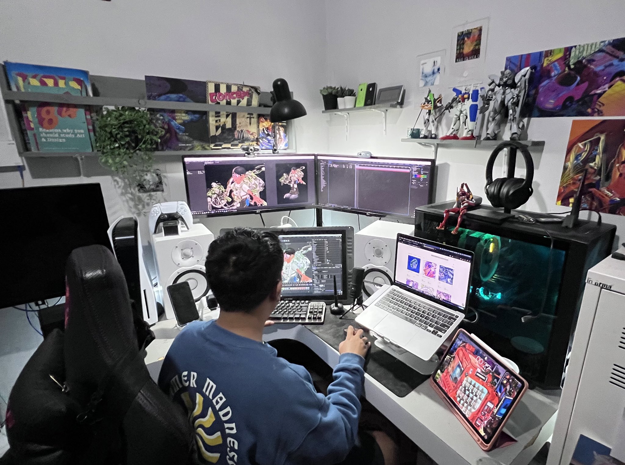 >>107544653Oh I thought this was AI generated. What kind of PC even is that? it's huge.Also, I got any links for the monitors and mounts? Please, this config really cleared up a lot of things, I want my set up almost exactly like yours. no homo