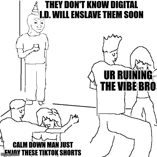 Literally this right now. Depressing.>To think A.I. slop was bad, they now force you to put finger print, photo and full name before connecting to wifi, UK, Canada, Australia are all screwed