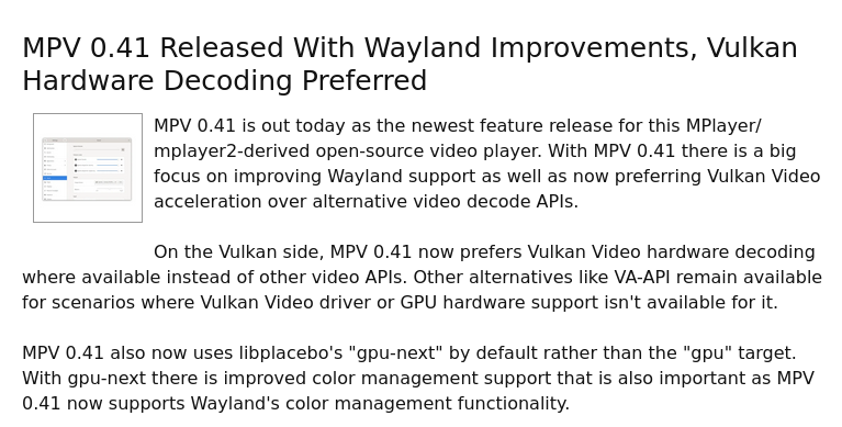 >improving Wayland support is a conspiracy theoryNothing in there says X11 support is getting dropped or Wayland is preferred. What's wrong with Vulkan Video?