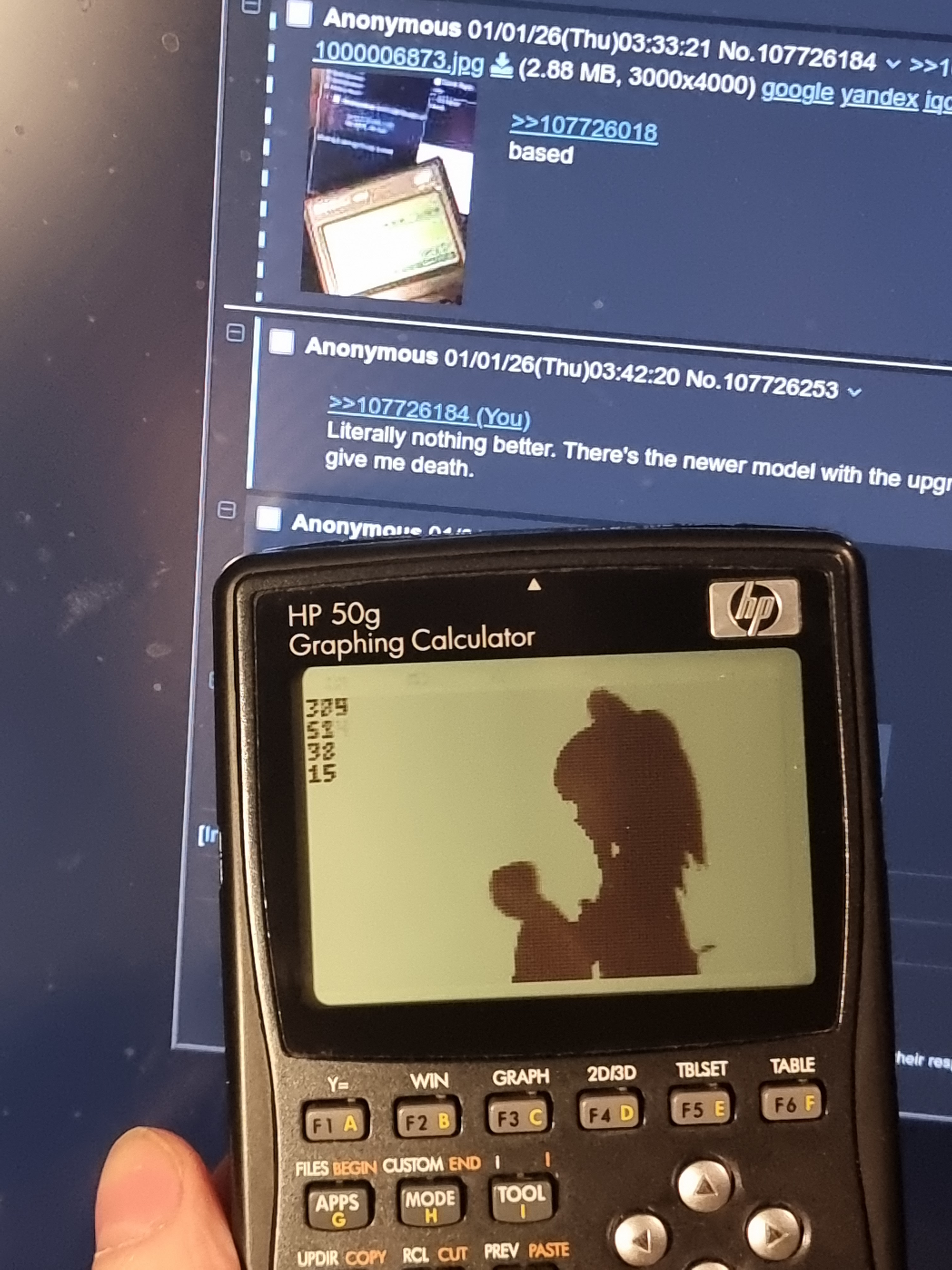 >>107726253HP 50g? Yeah own one too. This one I actually use daily, since my 48's are indeed endearingly slow, and in too good of a condition to put wear and tear on.>but it uses emulation and that gives me the icks.The upside of that is it needed a CPU powerful enough to emulate the old Saturn processors, so it ended quite overpowered. And you can program it natively with C.