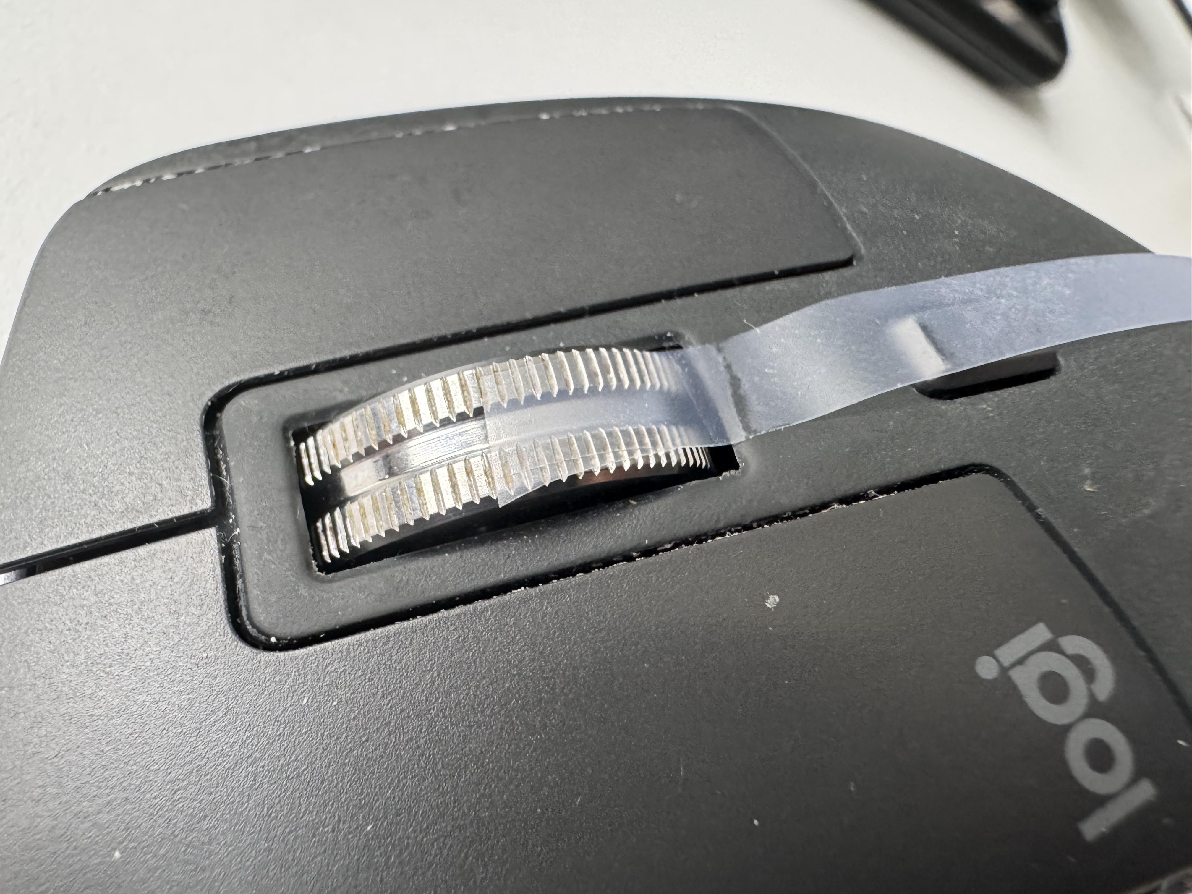 >premium mouse>cleaning the scroll wheel requires carefully trimming and attaching double-sided tape so you can run it through What were they THINKING?