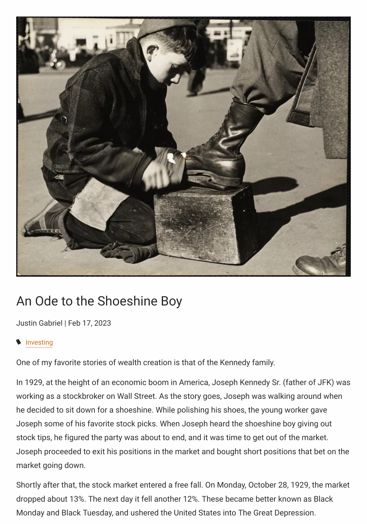 >>108609742Diferent times, same energy.>picrelhttps://www.pitzlfinancial.com/blog/ode-shoeshine-boyIt's coming and it's big. Take care.