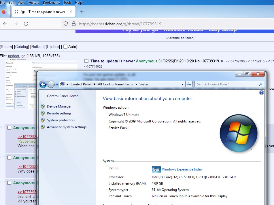 >>107739319You need a better computer. the Ryzen 5800x works great on windows 7.