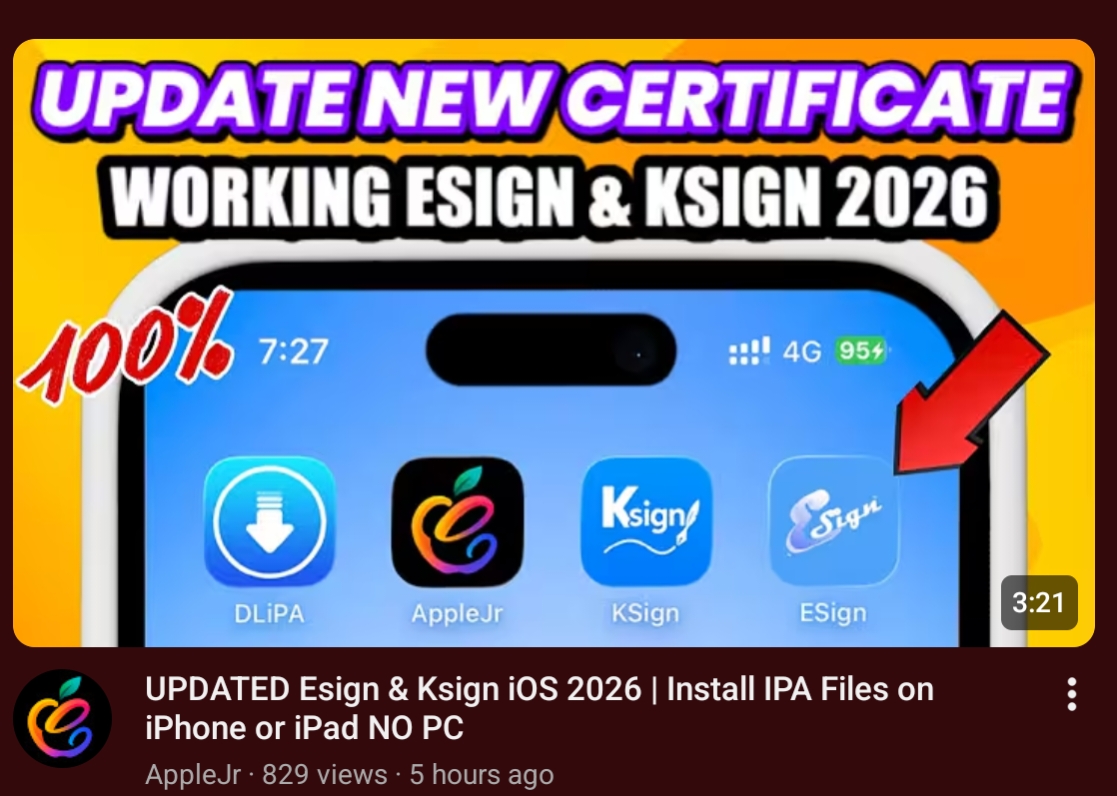 New videos out by AppleJr.No need to jailbreak. New AppleJr videos up!No PC, install any ipa and I tested the certs which are working. Enjoy! >>107885917https://youtu.be/EL7ZCdoff3Q?si=7B17lpMX71kaJQUq