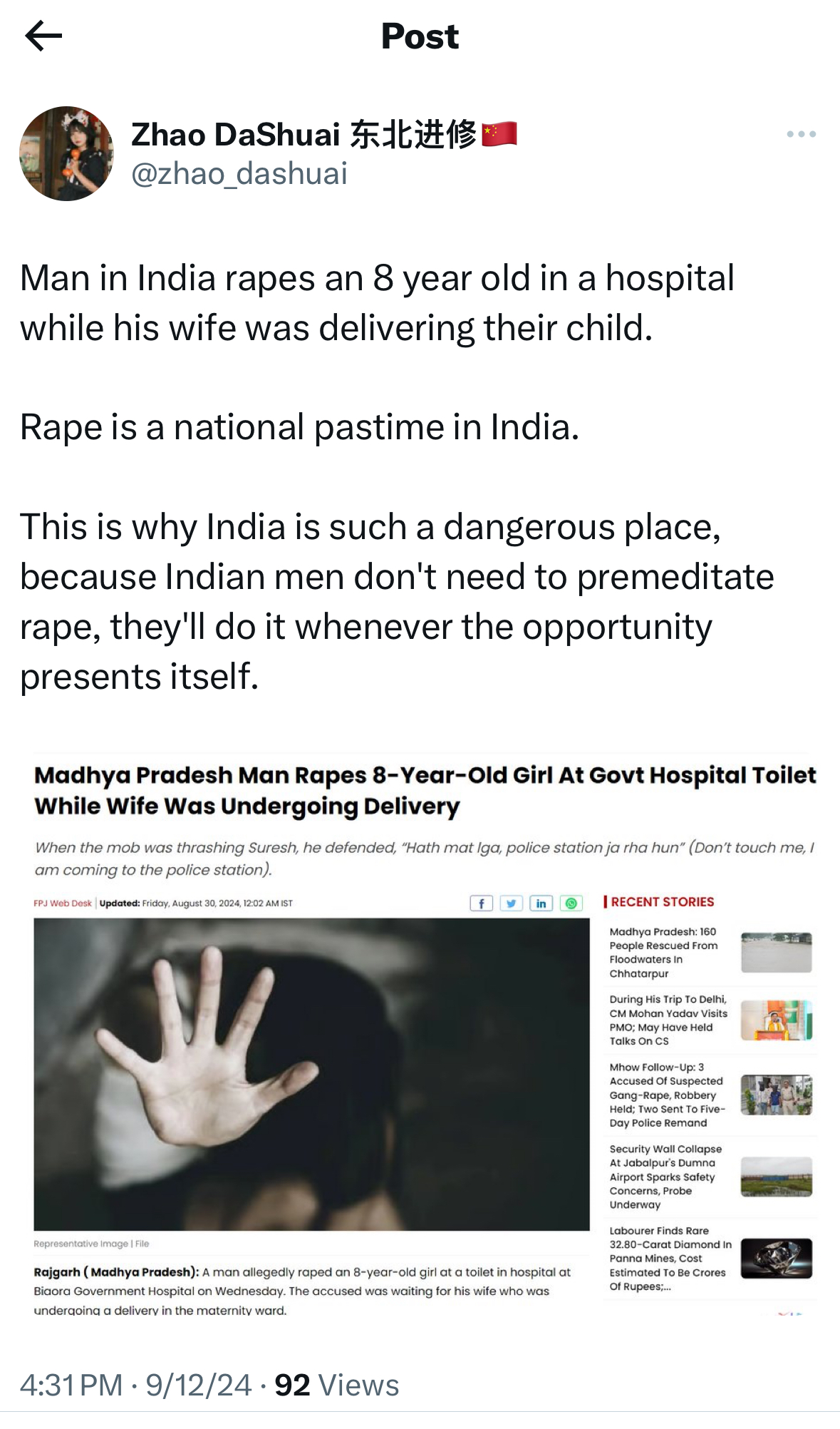 >>107660094Indian Hindu rape rats can't stop raping. Let's see if the Hindu rapejeet jannies are going to take my post down for "racism" while pretending they didn't see the Indian shitskin OP's post.