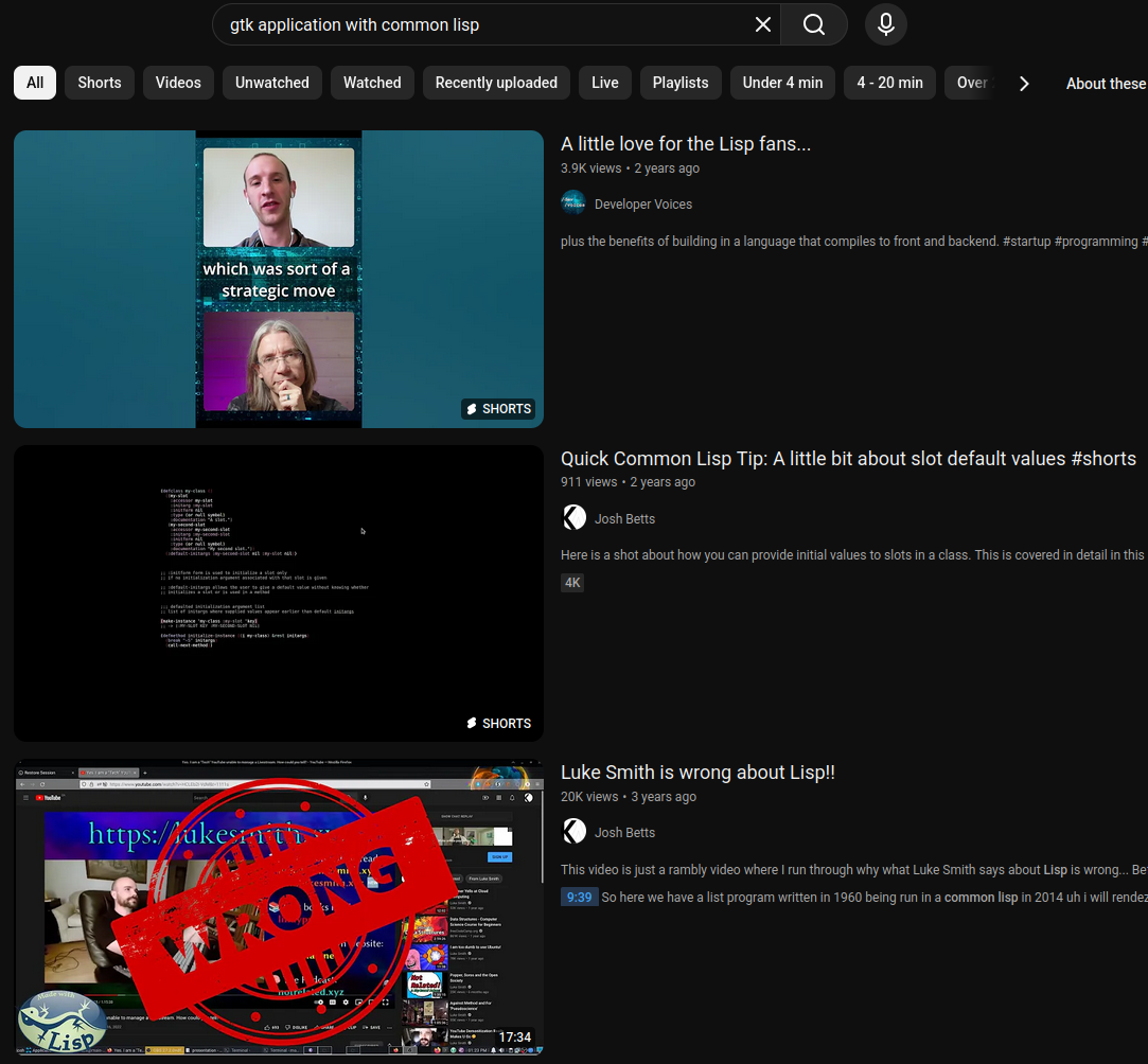 >open youtube, lobsters, reddit, 4chan archives, etc.>search for "I made a program in C/Zig/Go">millions of projects with real world usecase such as servers, terminal programs, gui programs that serve real usecases like video editing, recording, etc.>search for "I made a program in <insert functional language here>">calculators, fizzbuzz, toy math program that calculates some formula and exits, competitive programming, transpilers, seething videos about how everyone is wrong about their language being useless, or just straight up no results if the functional language is not well knownI am starting to think functional programming is a meme ...