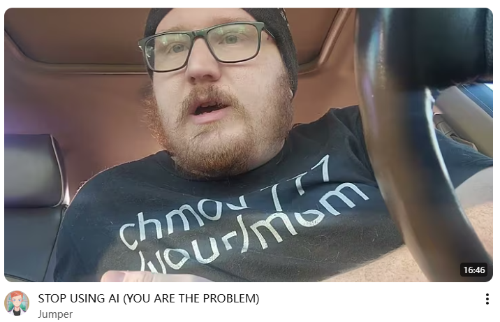 STOP USING AI (YOU ARE THE PROBLEM)https://www.youtube.com/watch?v=qXyKPydKe88