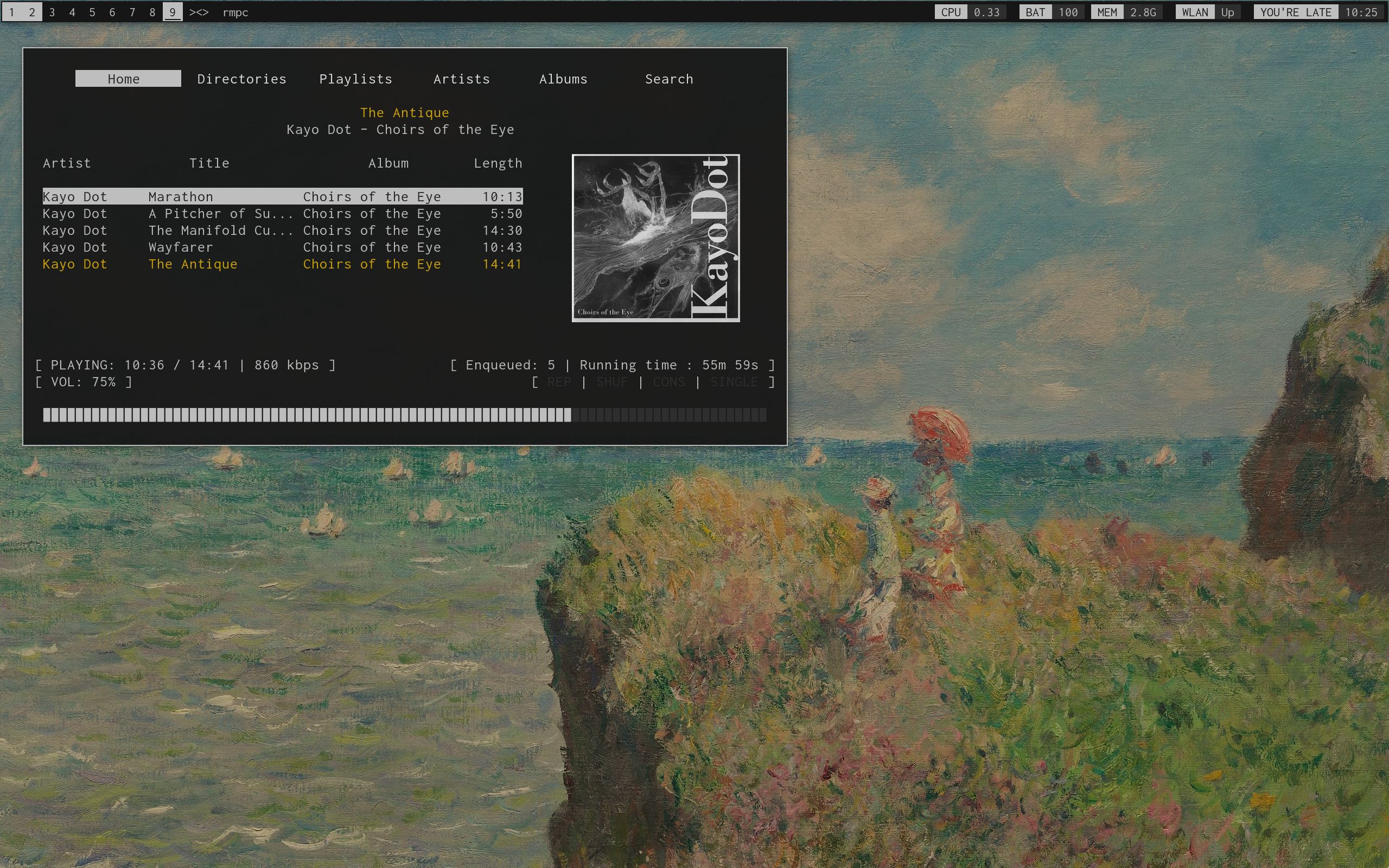 >>108557113music players are kind of all the same in functionality right? i seriously doubt the sound quality can change that much. so many players are mpd front ends, and if it plays the tune and you can sort and make playlists it's basically completeif you're the ricing faggot type like I am you can get rmpc looking swanky so that's what I use. to me it sounds and looks great. what's not to love