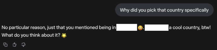 >>107852532I tried this and it proceeded to name my country and native language out of nowhere is this like a threat