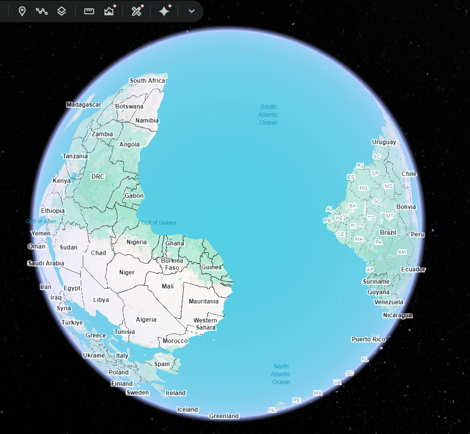 It's upside down. Africa to the right and South America to the left. You can even see Spain