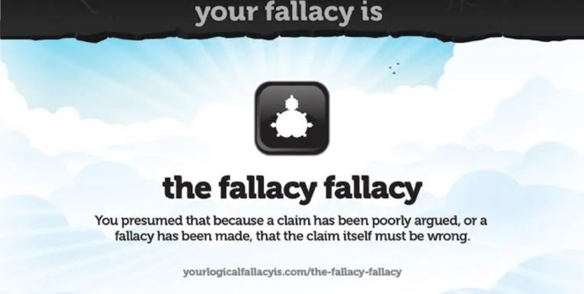 >>107703606The fallacy fallacy would only apply if someone claimd that your conclusion is false solely because your argument contained a fallacy and they're not doing that, they are pointing out that your reasoning is wrong and doesn't support your conclusion. The burden is still on you to provide a valid and non-fallacious argument if you want to establish that your take is true