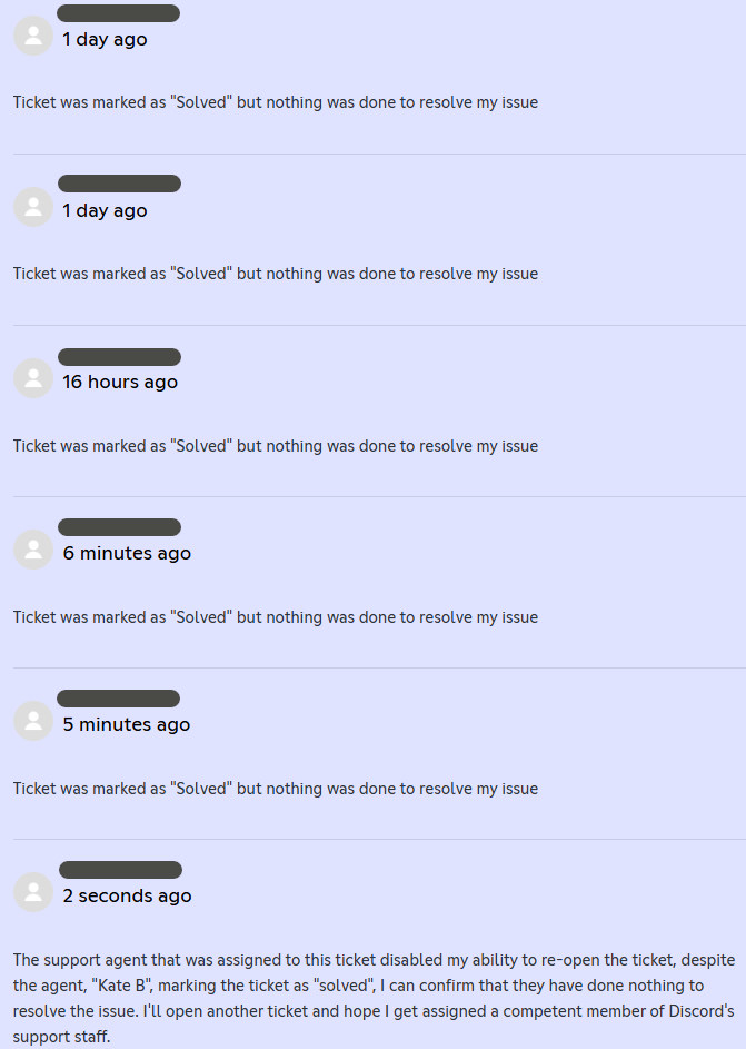 So i opened up a "Technical Support" ticket, and after being transferred from the AI chat agent "Nelly" to what I presume to be an actual person, all they did was keep marking my ticket as "Solved" and I kept re-opening it until they eventually flat out prevented me from re-opening the ticket
