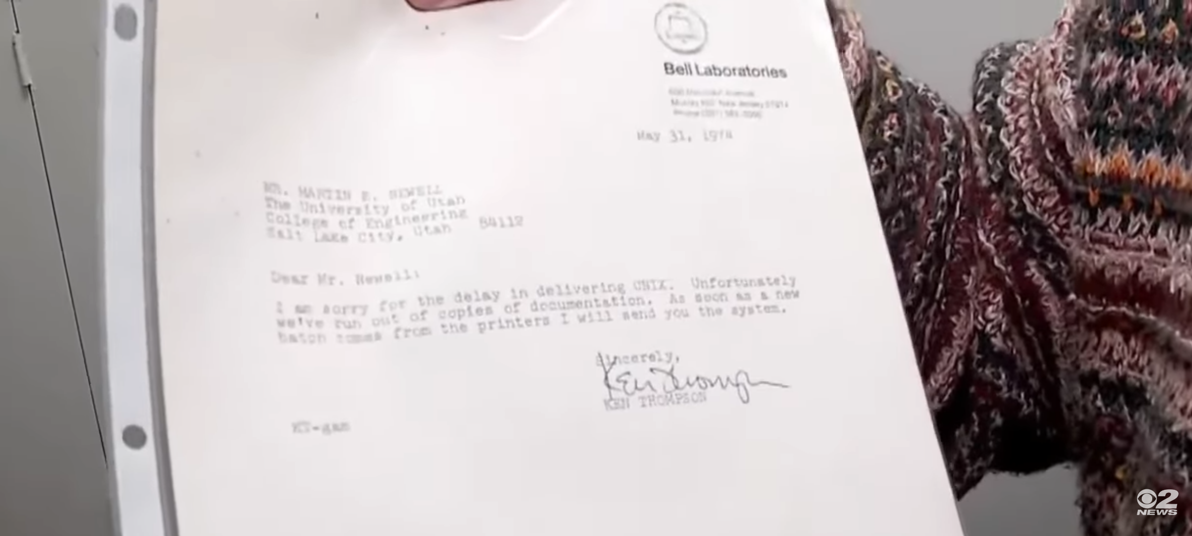 Bell Labs letter from the desk of Ken Thompson.