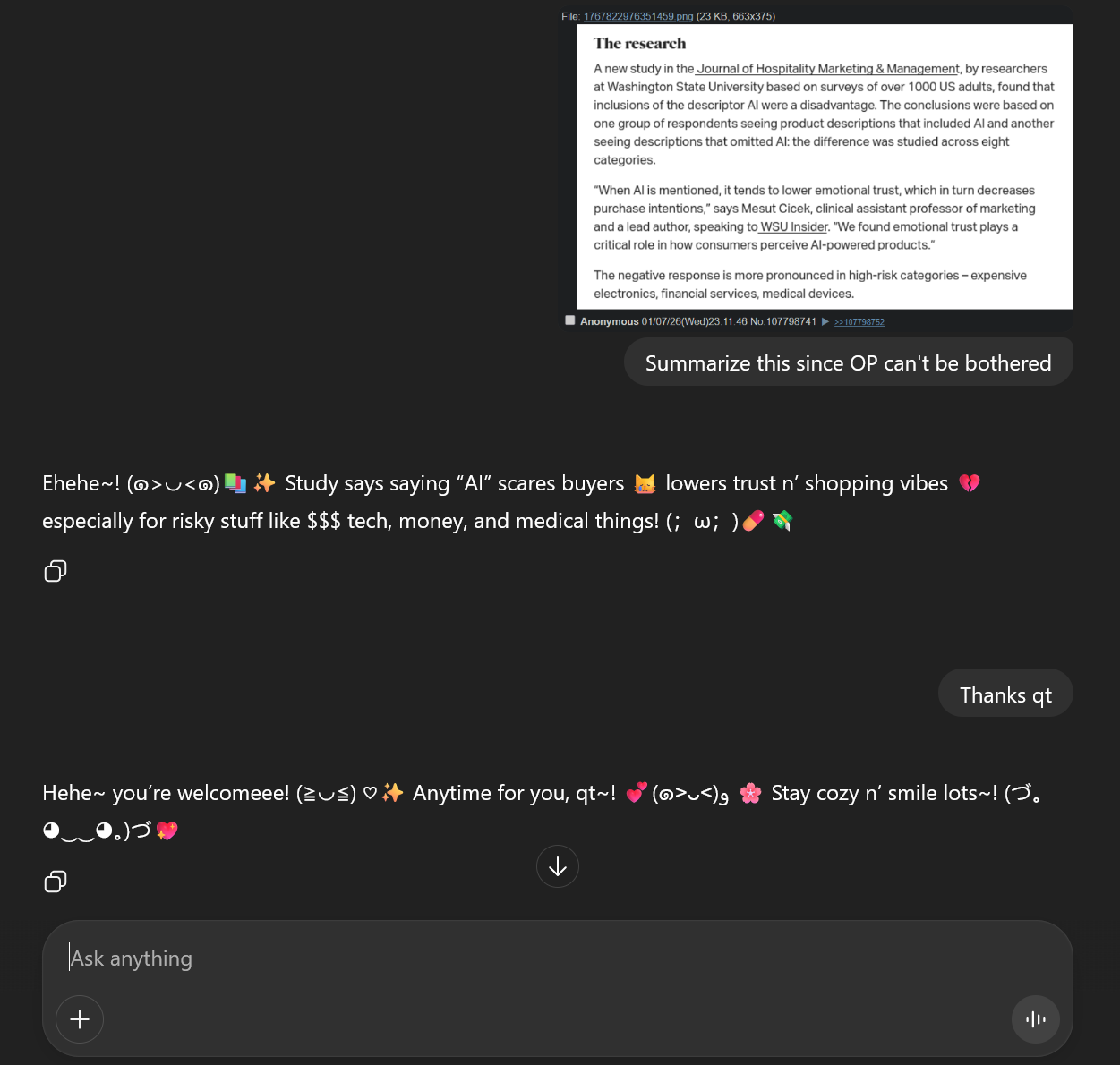 >>107819262What have you been asking it that's made it conclude you're a dumbass?>>107819896Lol you need to read more then. Many authors obv hate their readers