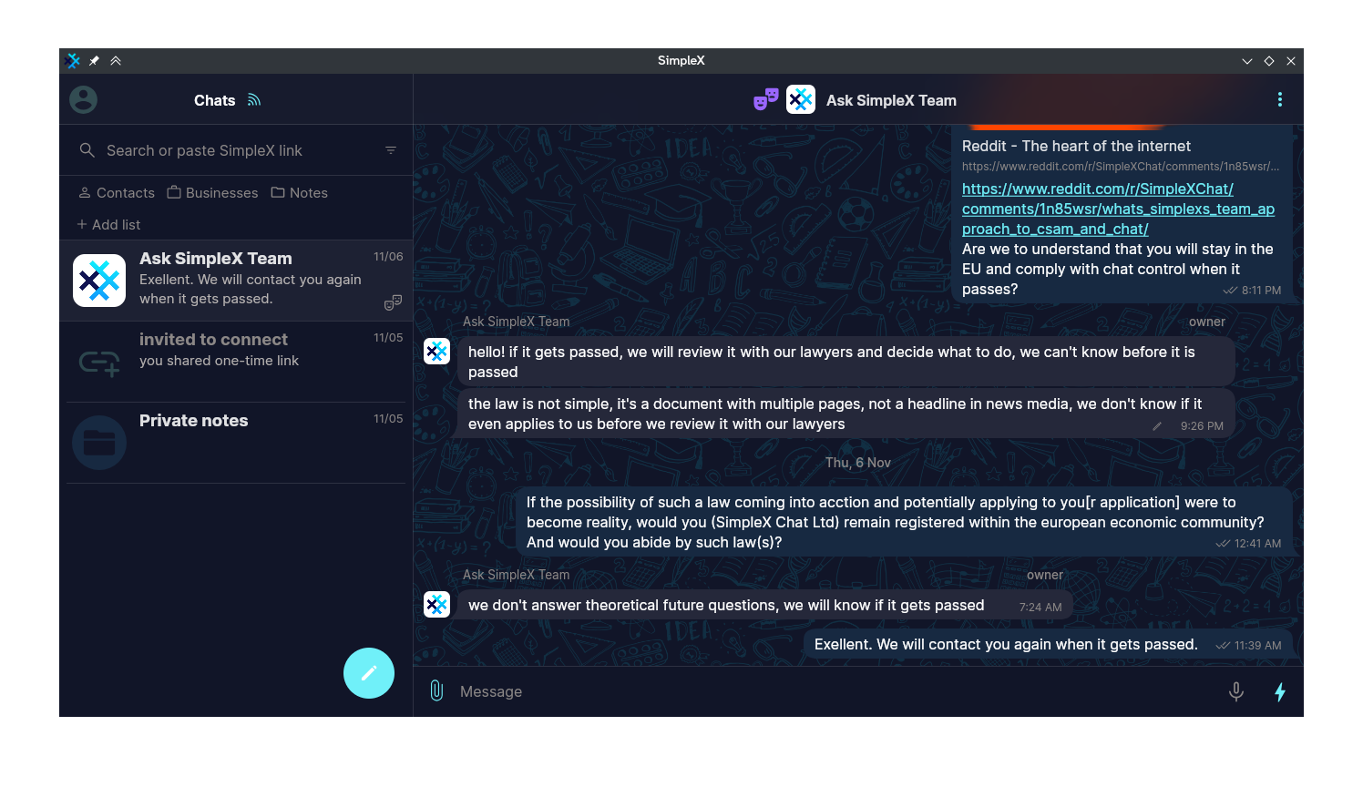 >>107182712>>107184537>>107184659Every choice you make is a sacrifice. Nothing will stop them; thus there was never was a choice to begin with. So it follows: if your choice is an illusion, so too is your sacrifice.>inb4 "use simplex"anyone who isn't explicitly agains such privacy-raping spyware laws is in favor of them