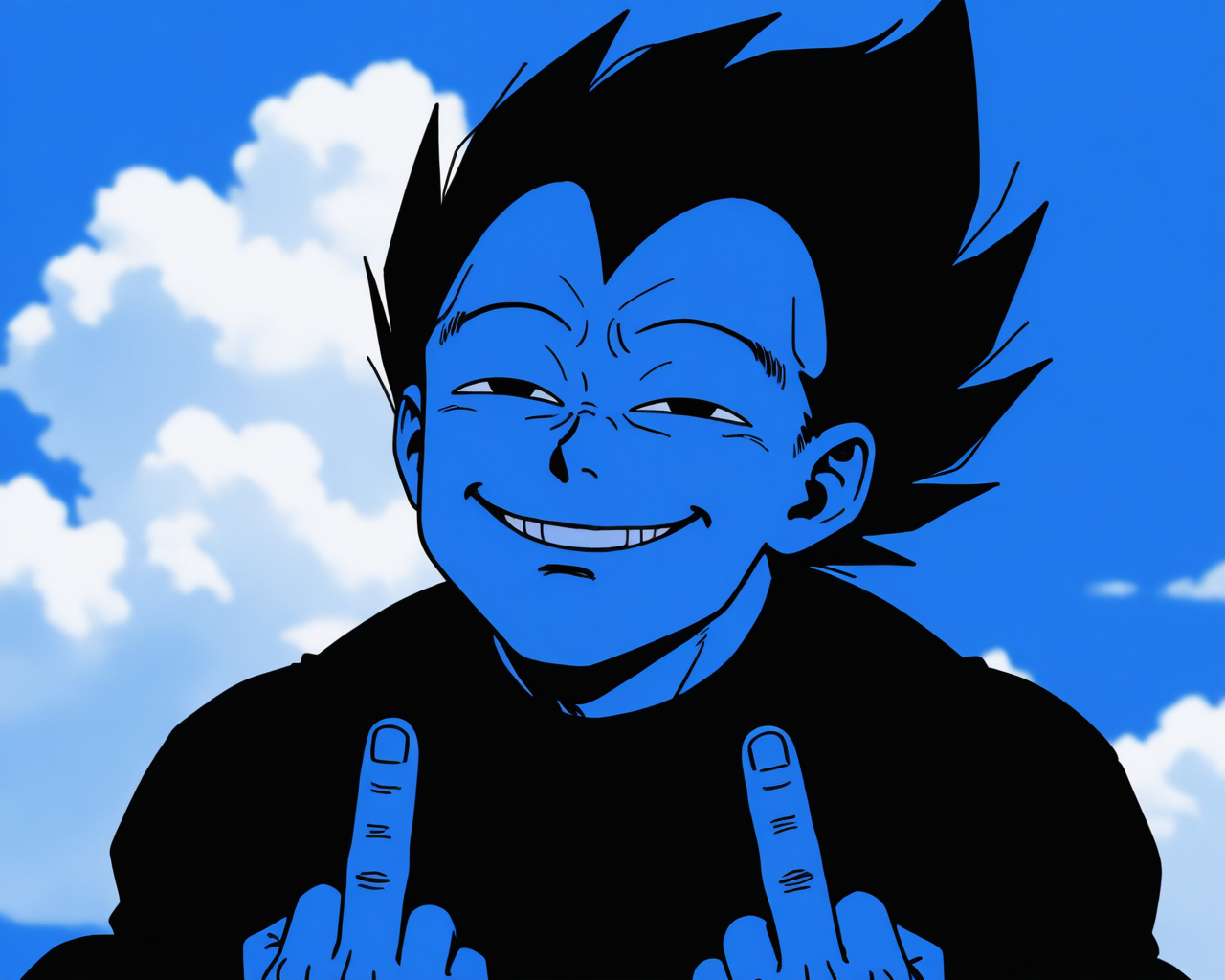 >>106789830the man in image2 who is 6 feet tall is shaking hands with the green cartoon frog wearing a blue shirt and red shorts and white sneakers in image2. the background is white.if it's a cropped image stating general size helps with combining gens.