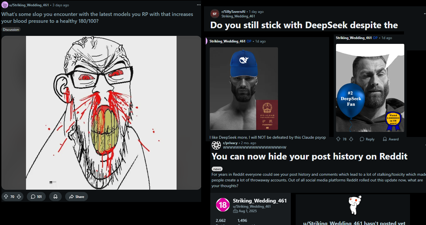 >>106835287i'm notswipes make a lot more sense with llms on high temperature (eg., creative writing)also don't forget deepseek is a 671B parameter model so it's much more temperature-sensitiveif you ignore the shilling (from both sides), it's an insanely good modelthe only reason to ever use a more expensive model over it is you're either on a proxy or have zero understanding of monetary value