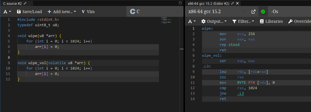 Then the compiler will set arr to 0, one byte at a time. It won't make optimizations like calling memset instead, setting it 16 bytes at a time, or something really clever like pic rel.