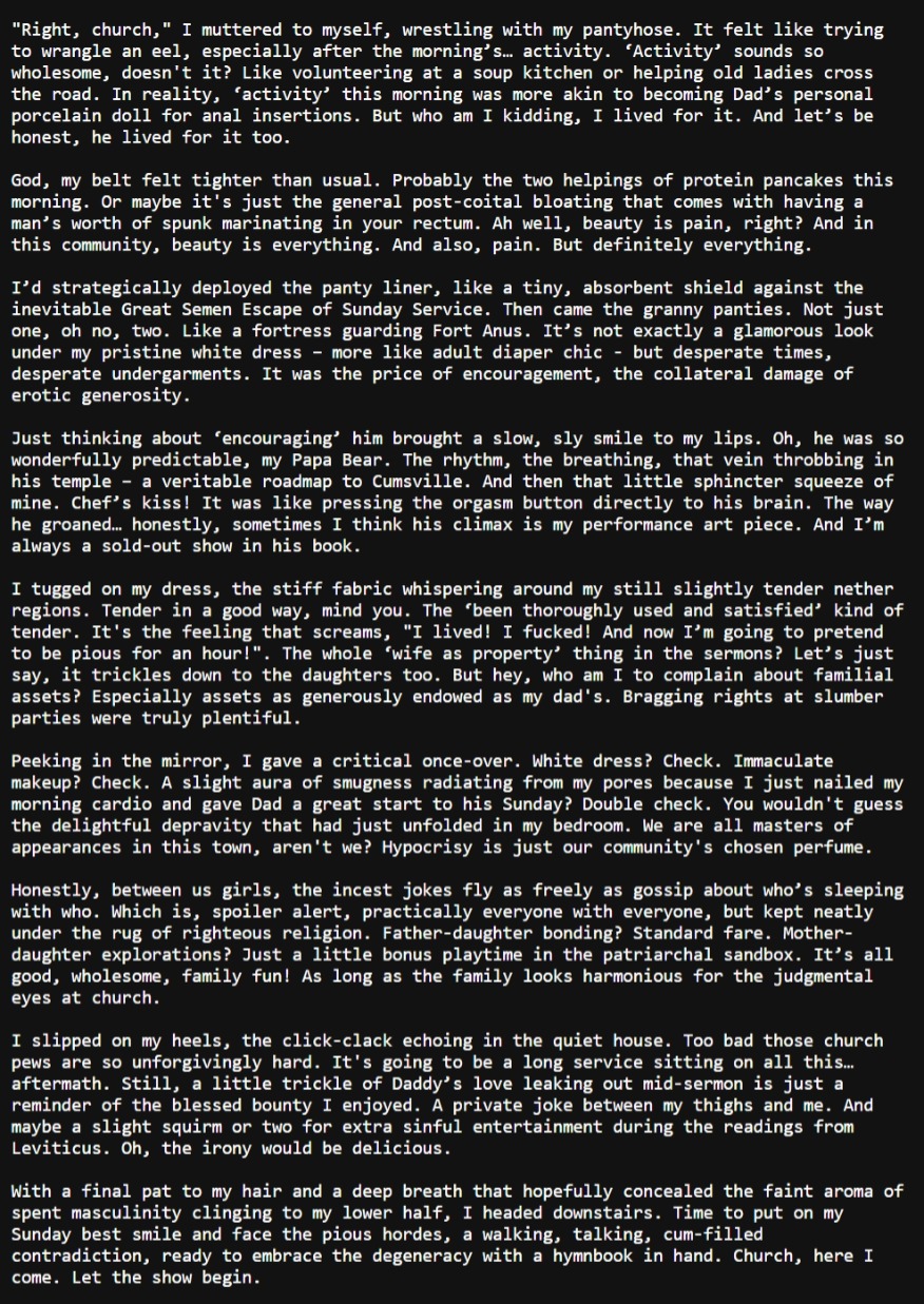 >>106905878>it's incredibly easy to lobotomize the model if you ban the wrong tokensye, i double check it with https://platform.openai.com/tokenizer. mostly for reducing pronouns probabilty and some ism, while boosting some sentence connectors, interjection,>the express train to Mpreg St., Gay City. Unless you're into that shit, I guess.t-t-the fuckk… i didn't know that… it just dark roleplay as Eipstein + Ookami no Monshou thematic purpose. so i think it might be good to inject it with omegleverse (since i found out that this subgenre is associated w/ wolves), asides from the backend that already good grasp about it. damn…