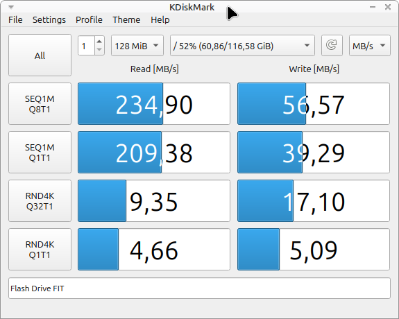 >>106931480I never get anywhere close to the advertised speeds with these things, they’re even bigger lies than SSDs. Just like I have some flash drives that advertise 300-400mb/s and you’re lucky to get 150 just like in your bench. At least with a portable ssd, you get closer to the advertised speeds.
