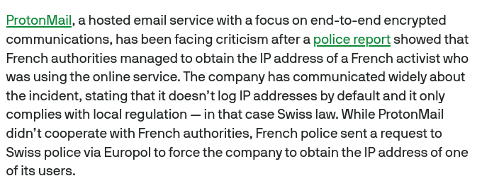 >>106953876> did not cooperateProton did co-operate. They just didn’t have it.Whoever wrote that piece is a retard.My company does the same thing, we collect nothing, we don’t have anything, and we’re not inundated with constant, warrantless requests from administrators and rogue states and two-bit wannabe detectives.Apparently, we might get a letter from ofcom in the uk. If we get enough of them we can use them as fuel to power our datacenter (we require physical registered mail, it’s our policy upyou understand)