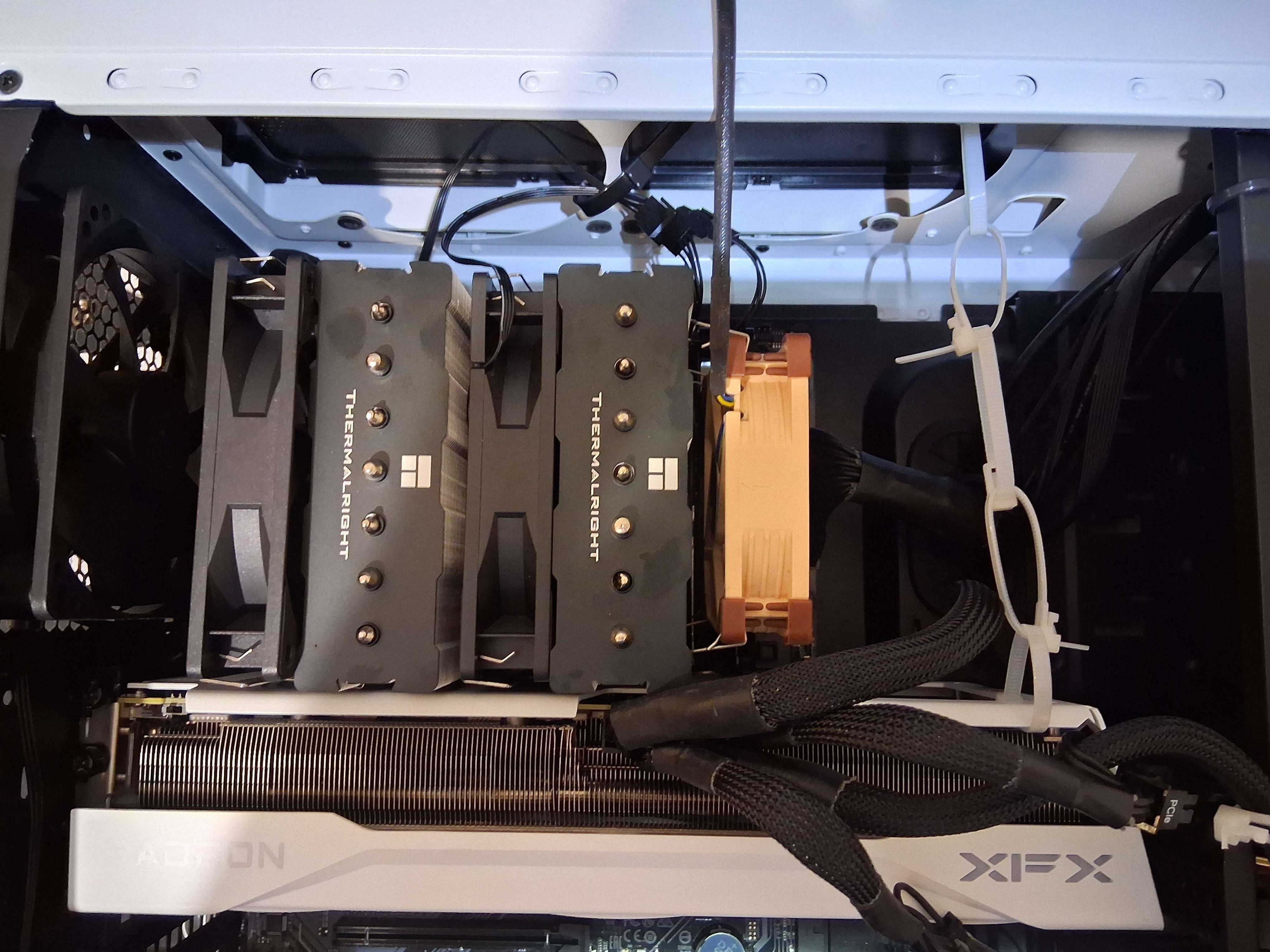 >>106965204>>106965168So I did this. It's a bit better, like 2-3°C, but not enough to be a difference in-game. That's with side panel open, ambiant temperature 22°C.All in all, I had better perf with a single Noctua on his smaller ventirad, as I could hit 50°C idle instead of 60°C.Where do I go from there -Change paste again and commit sudoku?Is my CPU defective ?Do I tighten the ventirad to the max?Invest in an AIO + new case to fit it?I don't see how just a new case could help me if I'm struggling opened.